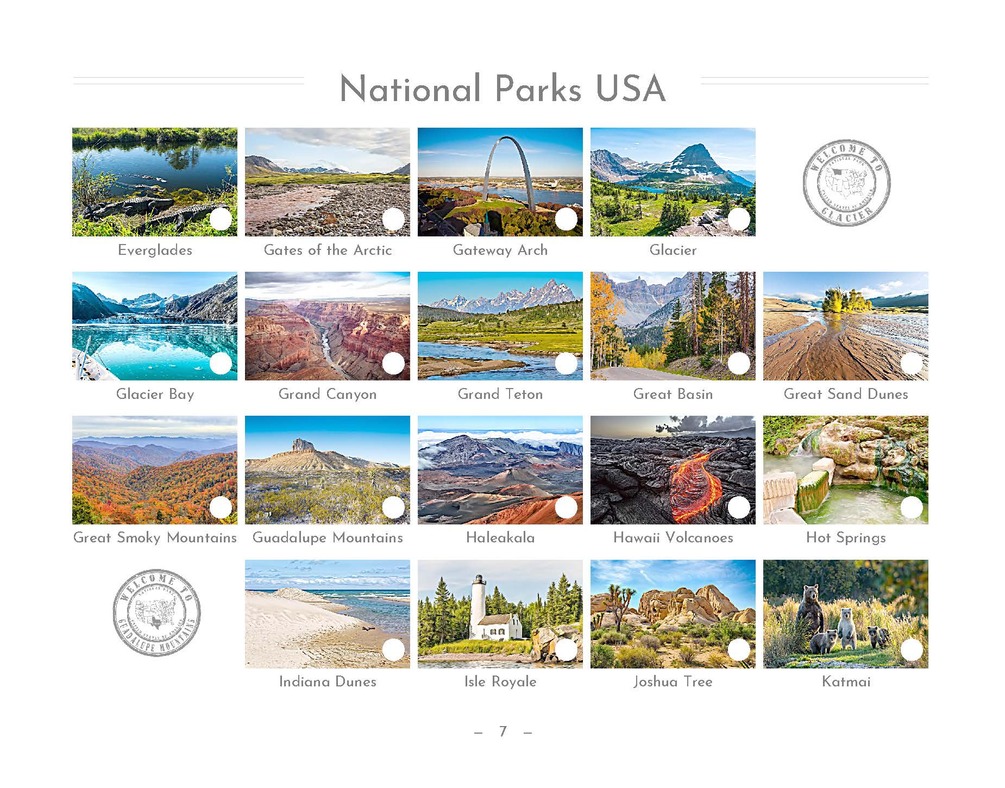 - All 62 national parks including checkboxes so you can mark off where you’ve been.